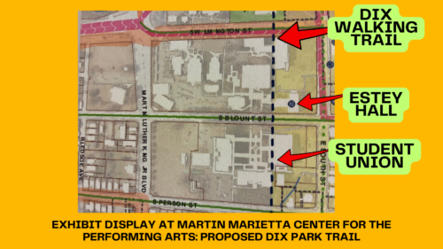 “I had a slide because I went to an event downtown at the Memorial Auditorium and there was an exhibit of the displacement of black folks in Raleigh. A big exhibit about the fourth ward as well as this walking trail going through Shaw University’s campus. So, again, it left me with a bunch of questions as we still have no master plan.”