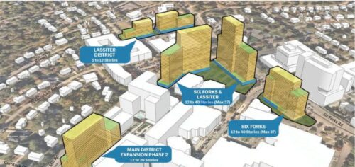 You asked for density – the expansion of North Hills Main has just been completed after three years of lane closures on Lassiter Mill Road. Note that this expansion project stayed within current zoning recommendations without adding any buildings greater than 12 stories.