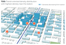 ETOD states plainly: “Density does not simply translate to taller buildings but more importantly a compact urban form” and “transition building height and bulk downward from the station to connect with adjacent, lower density districts and neighborhoods.” Growth around transit is encouraged—but always in a neighborhood-sensitive context.