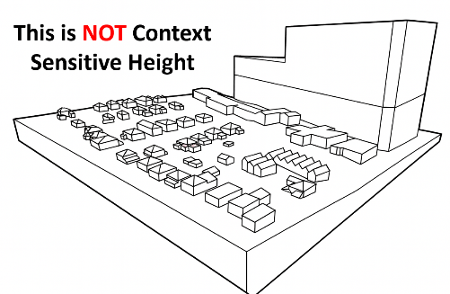 Towering development without transition would cast shadows, create glare, and overwhelm the character of HGBN. Respecting context means reducing excessive height, limiting impacts, and ensuring transitions that protect livability.